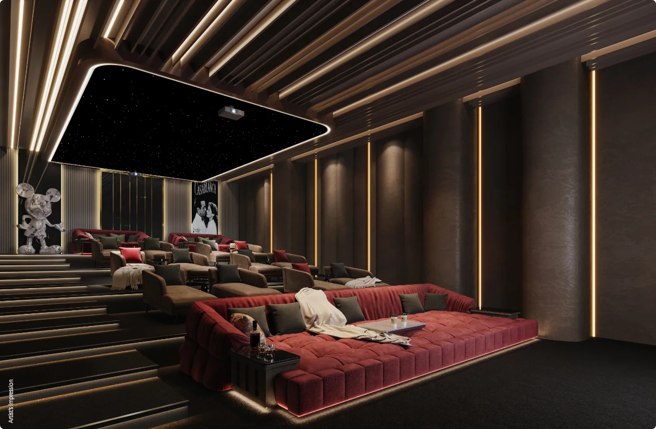 A sprawling 18,000-square-foot tropical paradise for children and families redefines the "at-home" family vacation with a daily dose of games, leisure, and rejuvenation. Think lazy Kerala backwaters meeting lush tropical forests of the Amazon, all accessible by a high-speed lift. This oasis offers you your very own private slice of paradise.